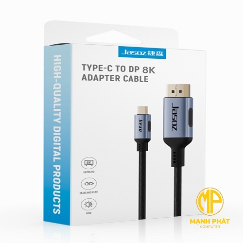 Cáp chuyển Type-C sang DisPlayport JASOZ A144 (2m) T-A397 phiên bản 1.4 hợp kim nhôm 8K