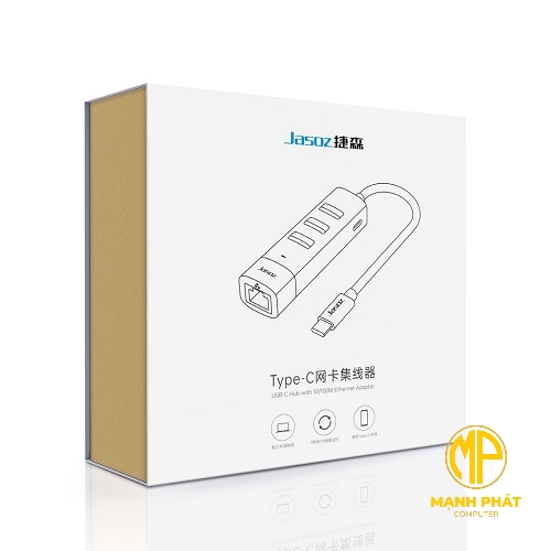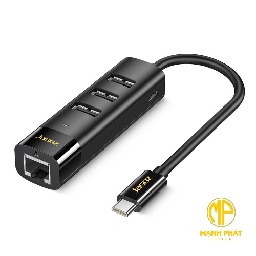 Cáp Chuyển USB-C Sang LAN Jasoz T-F115 Đen/Trắng Tốc Độ 100Mbps Kèm 3 Cổng USB 2.0