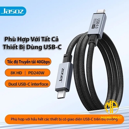 Cáp USB4 USB-C to USB-C Jasoz D119 (1,2m) T-D202 Hỗ Trợ 8K@60Hz Truyền Dữ Liệu 40Gbps, Sạc 240W Cao Cấp