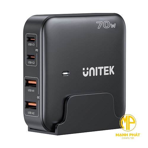 Cốc Sạc 2USB/ 2Type-C + Dây nguồn số 8 (70w) Unitek P1228ABK/ P1228AWH