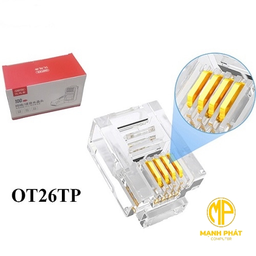 Đầu bấm điện thoại 4 line RJ11 Unitek 6P4C OT26TP (100 Cái/Hộp)