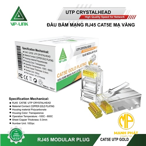 Đầu Mạng RJ45 VP-Link CAT5E Đầu Vàng (100pcs)