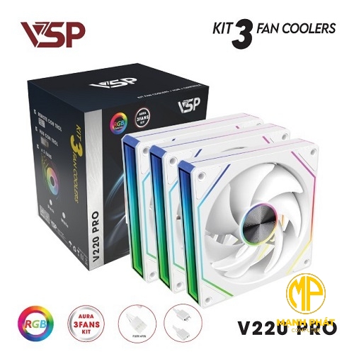 Fan Case VSP V220 Pro (Bộ 3 quạt 120mm + Hub | Trắng) ARGB SYNC