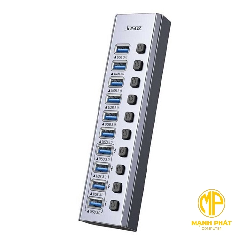 Hub Jasoz T-F165 10 Cổng USB 3.0 Có Công Tắc Kèm Nguồn Phụ 12V/4A ( Có Thể Sạc)