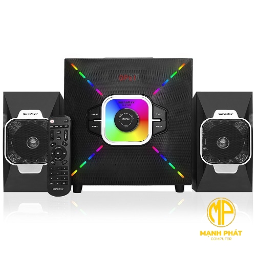 Hệ thống loa 2.1 kênh, thùng loa màu đen