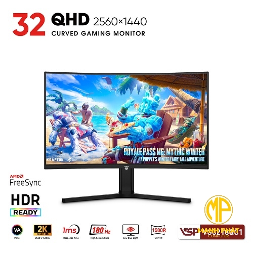 Màn hình cong Gaming VSP VG3218QC1 (32inch Cong VA | R1500 | 2K | 180Hz | HDMI2.0*2 | DP*2 | 1ms)