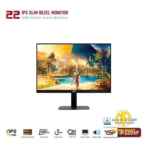 Màn hình văn phòng VSP IP2205F Đen (22inch IPS | 120Hz | VGA*1 | HDMI*1 | Loa 4Ω2W*2 | 1ms)