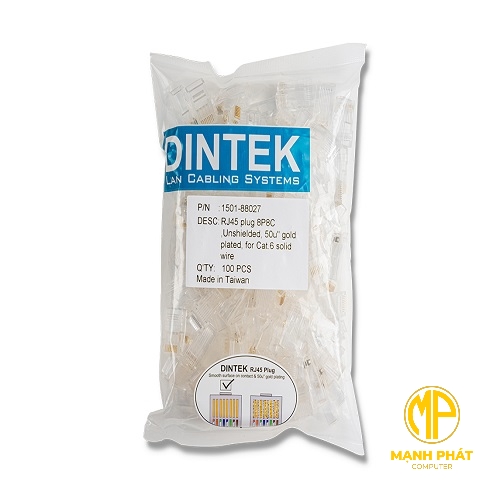 Modular plug DINTEK đầu RJ45 CAT.6 3 prongs contact 50u Gold plated 100pcs/bag 1501-88028