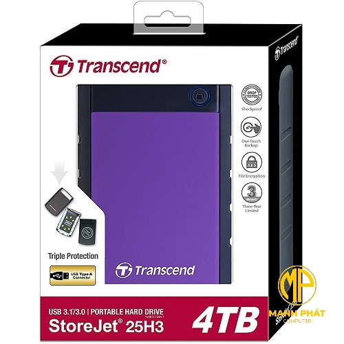 Ổ cứng gắn ngoài 4TB StoreJet 2.5" H3P (TS4TSJ25H3P) không chỉ là một thiết bị lưu trữ, mà còn là một tác phẩm nghệ thuật kết hợp giữa thiết kế bền bỉ và tính năng ưu việt. Vỏ ngoài chắc chắn, khả năng chống sốc chuẩn quân đội, cùng với cổng kết nối USB 3.1 Gen 1 tốc độ cao, mang đến trải nghiệm sử dụng tuyệt vời. Ngoài ra, phần mềm Transcend Elite đi kèm giúp bạn quản lý và bảo vệ dữ liệu một cách thông minh.