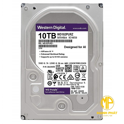 Ổ Cứng HDD WD Purple 10TB 3.5 inch SATA3 7200 RPM, 256MB Cache WD102PURZ