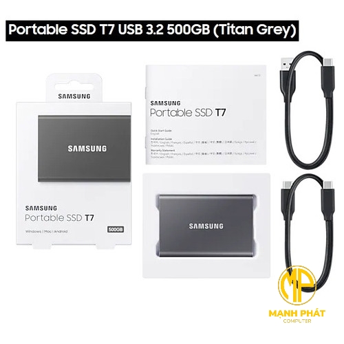 Ổ cứng SSD Samsung T7 Portable 500GB Gray EXT SSD 1.8" Non Touch MU-PC500T/WW