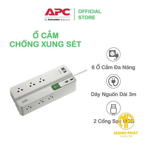 PM63U-VN| APC PERFORMANCE SURGEARREST 6 OUTLET 3 METER CORD WITH 5V, 2.4A 2 PORT USB CHARGER 230V VIETNAM