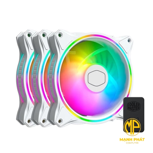Quạt tản nhiệt Cooler Master MasterFan MF120 Halo ARGB 120mm, (3 quạt), có bộ điều khiển, màu trắng | MFL-B2DW-183PA-R1