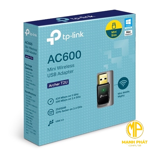 | Sản phẩm bao gồm | Bộ chuyển đổi USB Wi-Fi Mini AC600 Archer T2U Hướng dẫn cài đặt nhanh Đĩa CD Tài nguyên |