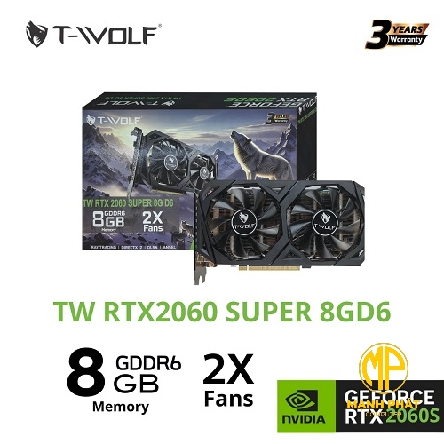 VGA T-WOLF TW-RTX2060SUPER 8G (D6 RTX2060 8GB GDDR6 256bit HDMI-DP*3 2Fan 8pin)