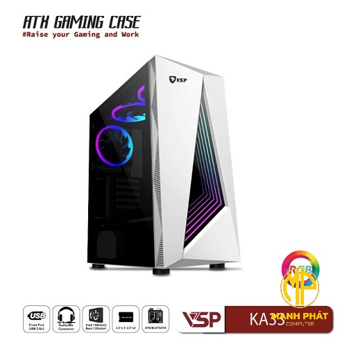 Vỏ Case Máy Tính VSP Gaming KA33 Trắng (ATX USB 3.0 | Có LED RGB | Nắp hông kính)