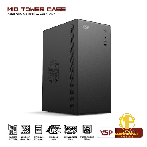 Vỏ Case Máy Tính VSP V200 Đen (mATX USB 2.0 | SPCC 0.6mm)