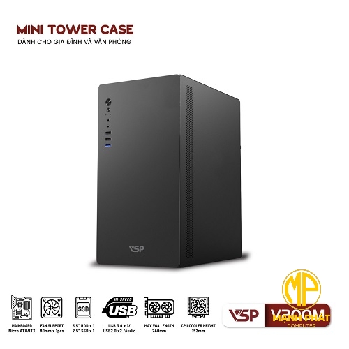 Vỏ Case Máy Tính VSP V200M Đen (mATX USB 3.0 | SPCC 0.6mm)