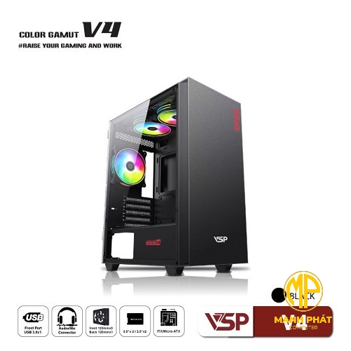 Vỏ Case máy tính VSP V4 Đen (mATX USB 3.0 | Nắp hông kính)
