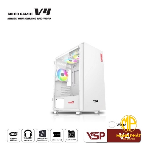 Vỏ Case máy tính VSP V4 Trắng (mATX USB 3.0 | Nắp hông kính)