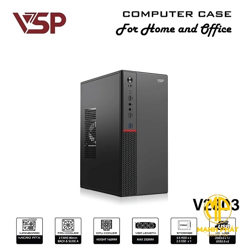 Vỏ Case VSP V2803 (MidTower | Màu Đen | No Fan| USB 3.0 | SPCC ) Văn Phòng