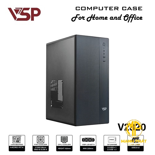 Vỏ Case VSP V2820 mATX USB 2.0 | SPCC Đen Văn Phòng