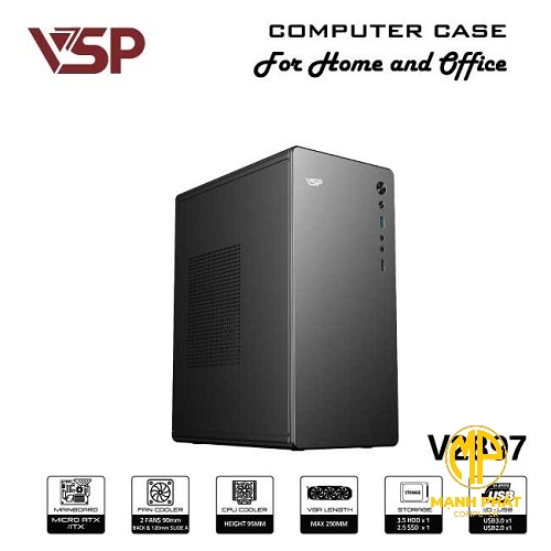 Vỏ Case VSP V2897 (MidTower | Màu Đen | No Fan| USB 3.0 | SPCC ) Văn Phòng